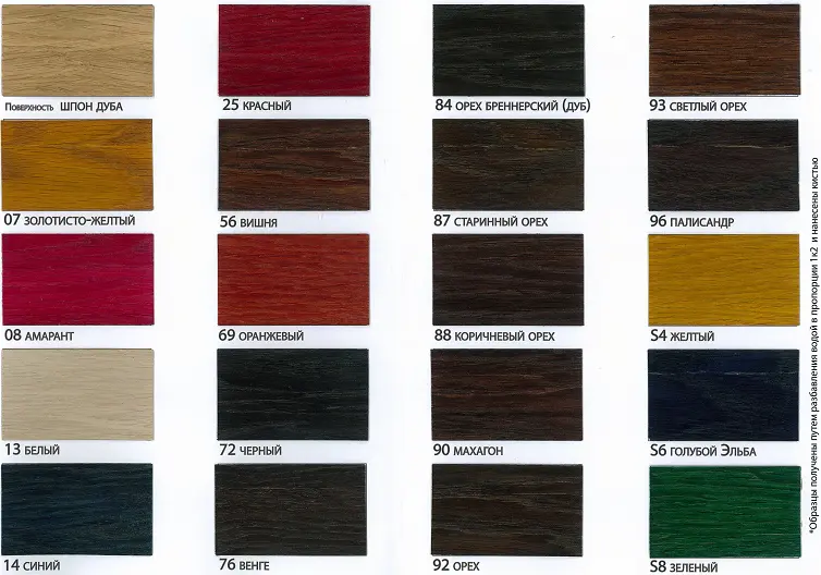 Поверх красителя можно наносить акриловый, алкидный, полиуретановый, НЦ лаки. При использовании полиэфирного лака предварительно нанести изолятор.